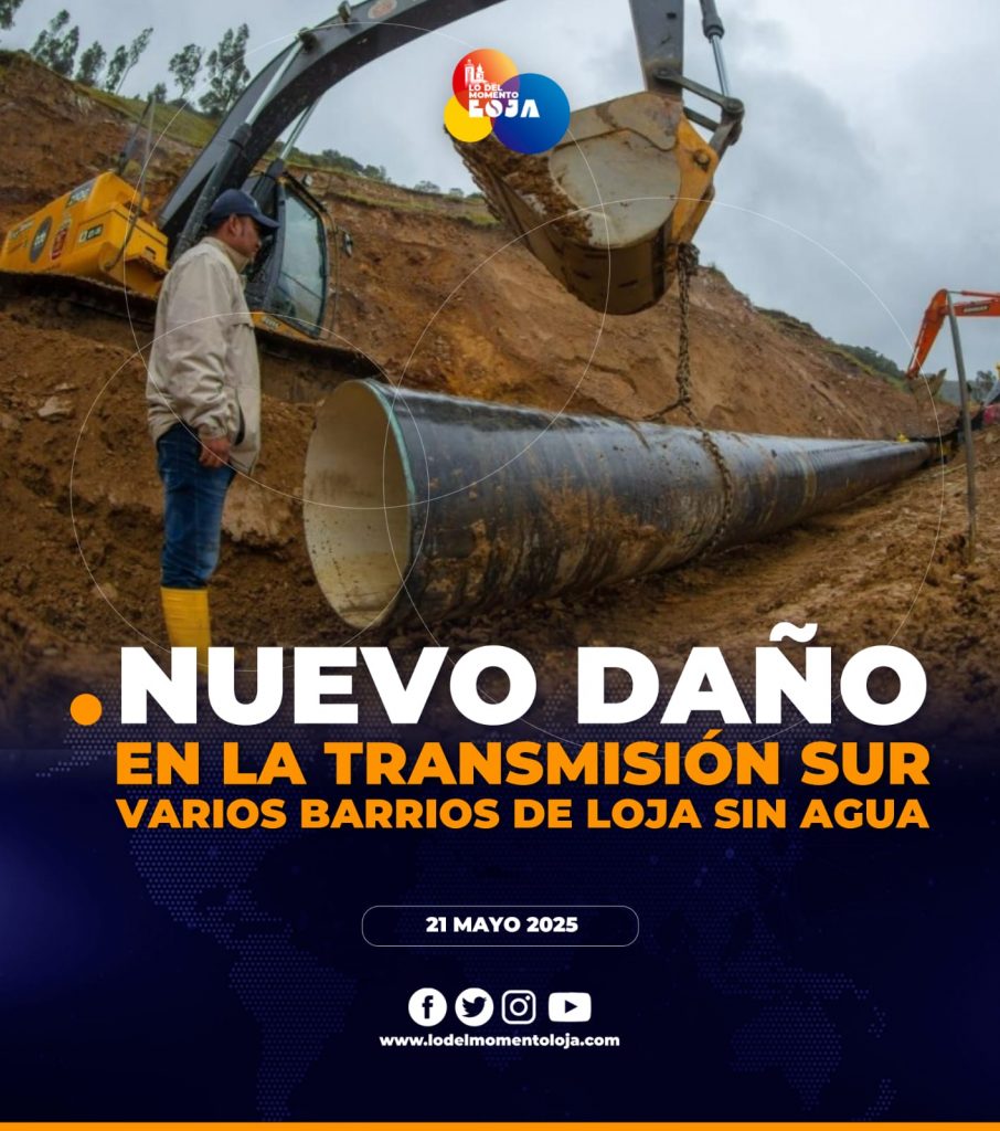 NUEVO DAÑO EN TRANSMISIÓN SUR DEJA SIN AGUA A VARIOS BARRIOS DE LOJA