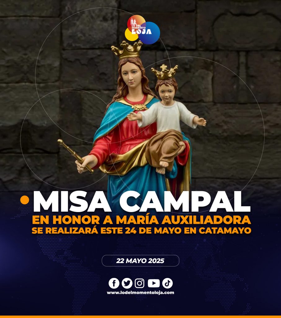 ⛪🙏🥳¡Fiesta religiosa! Este sábado 24 de mayo, se llevará a cabo una eucaristía campal en honor a María Auxiliadora en el cantón Catamayo que conmemora a la Virgen María como madre protectora de los cristianos y Patrona del cantón. Las autoridades eclesiásticas han preparado una serie de actividades para el 24 de mayo, entre ellas, la peregrinación desde el sector El Niño de Tambara hasta el templo donde se desarrollará la eucaristía, además de otras actividades que mantienen viva la devoción a esta advocación mariano.