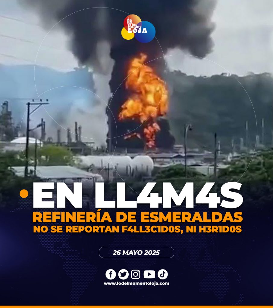 🔥😱👀 ¡Refinería en llamas! Un 1nc3nd10 se registró la mañana de este lunes 26 de mayo de 2025 en la Refinería de Esmeraldas. En las imágenes difundidas en redes sociales, se observa una 3xpl0s10n que desprendió una gran nube de humo alarmando a la comunidad, , por lo que el personal que se encontraba en la zona y estudiantes de establecimientos educativos aledaños fueron evacuados de manera preventiva y, de momento, no se reportan personas h3r1d4s o f4ll3c1d4s.