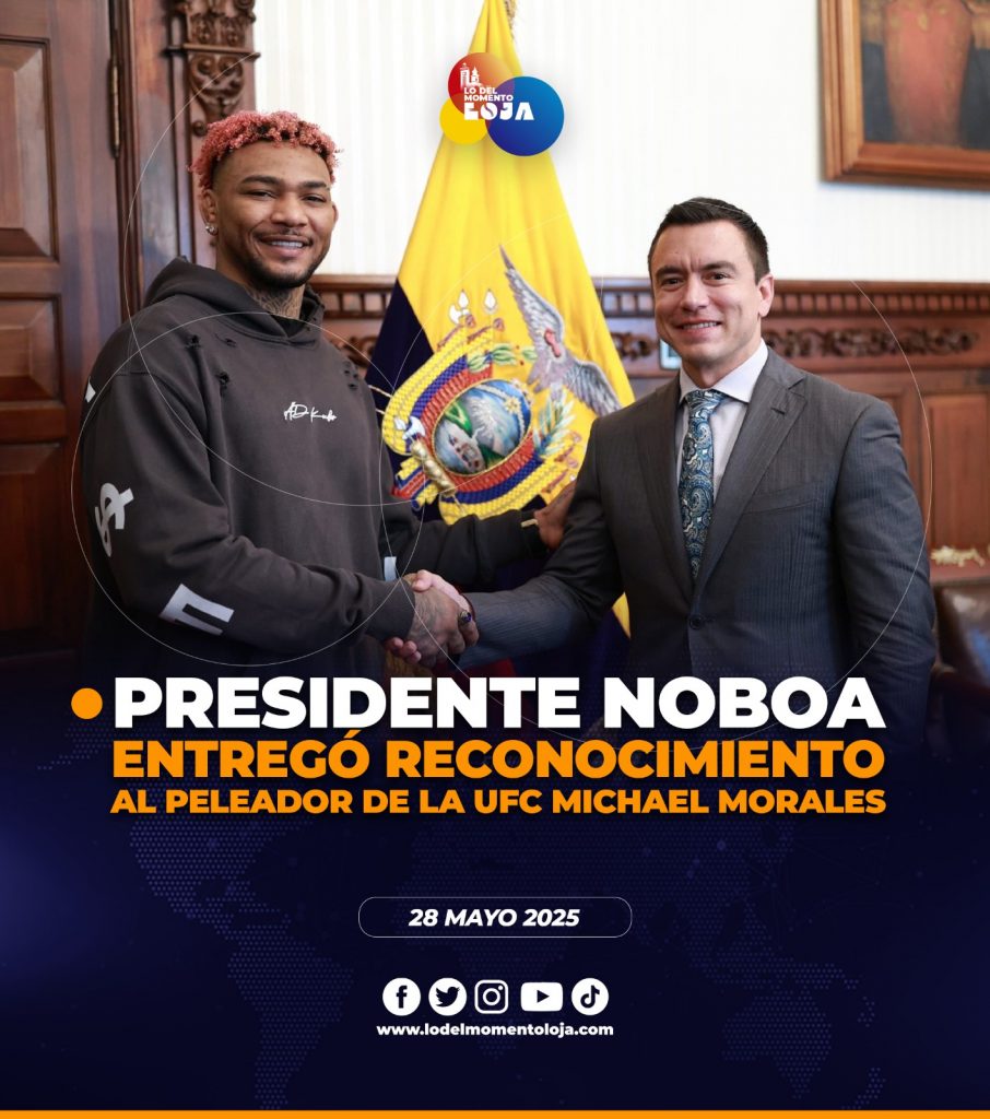 🇪🇨🥊🏅¡Bien merecido! El presidente Daniel Noboa recibió al luchador ecuatoriano de la UFC, Michael Morales, en el Palacio de Carondelet, en Quito. En dicha reunión el primer mandatario entregó un reconocimiento, por la destacada trayectoria y el orgullo que genera para el país, un símbolo de admiración y respeto.