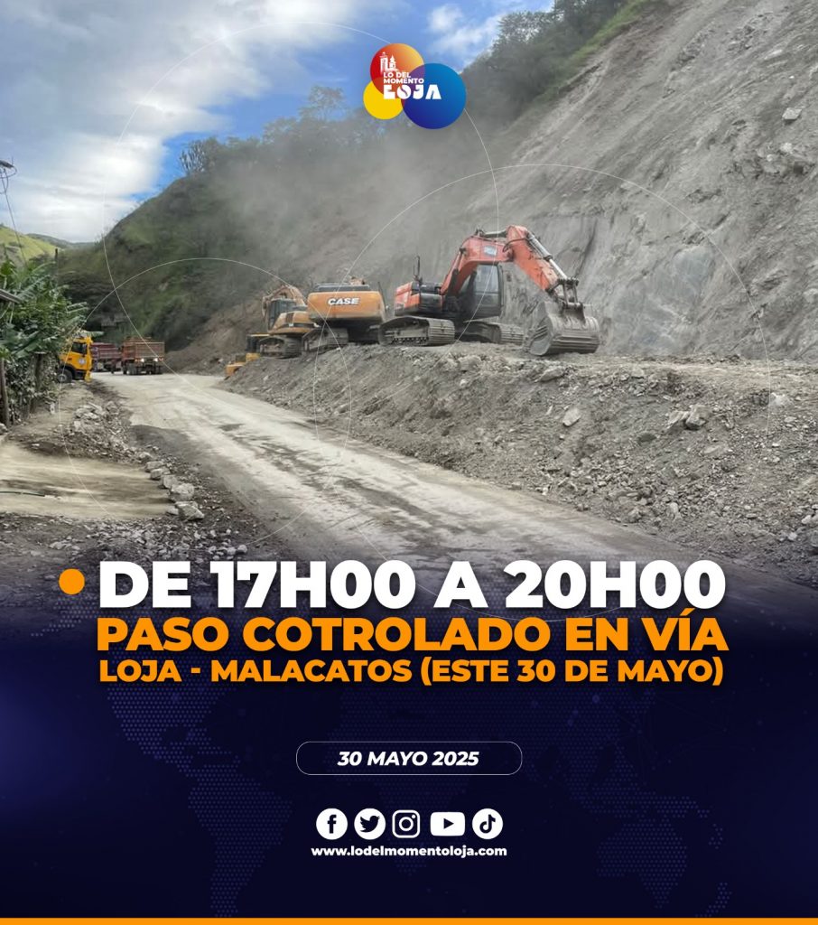 😱🛣️☑️¡Pilas con el horario! Desde el Ministerio de Transporte y Obras Públicas, se pone a conocimiento que este 30 de mayo, la vía Loja – Malacatos se habilitará con paso controlado, por trabajos de estabilización de talud en el sector Nangora, en el horario de 17h00 pm a 20h00 pm.