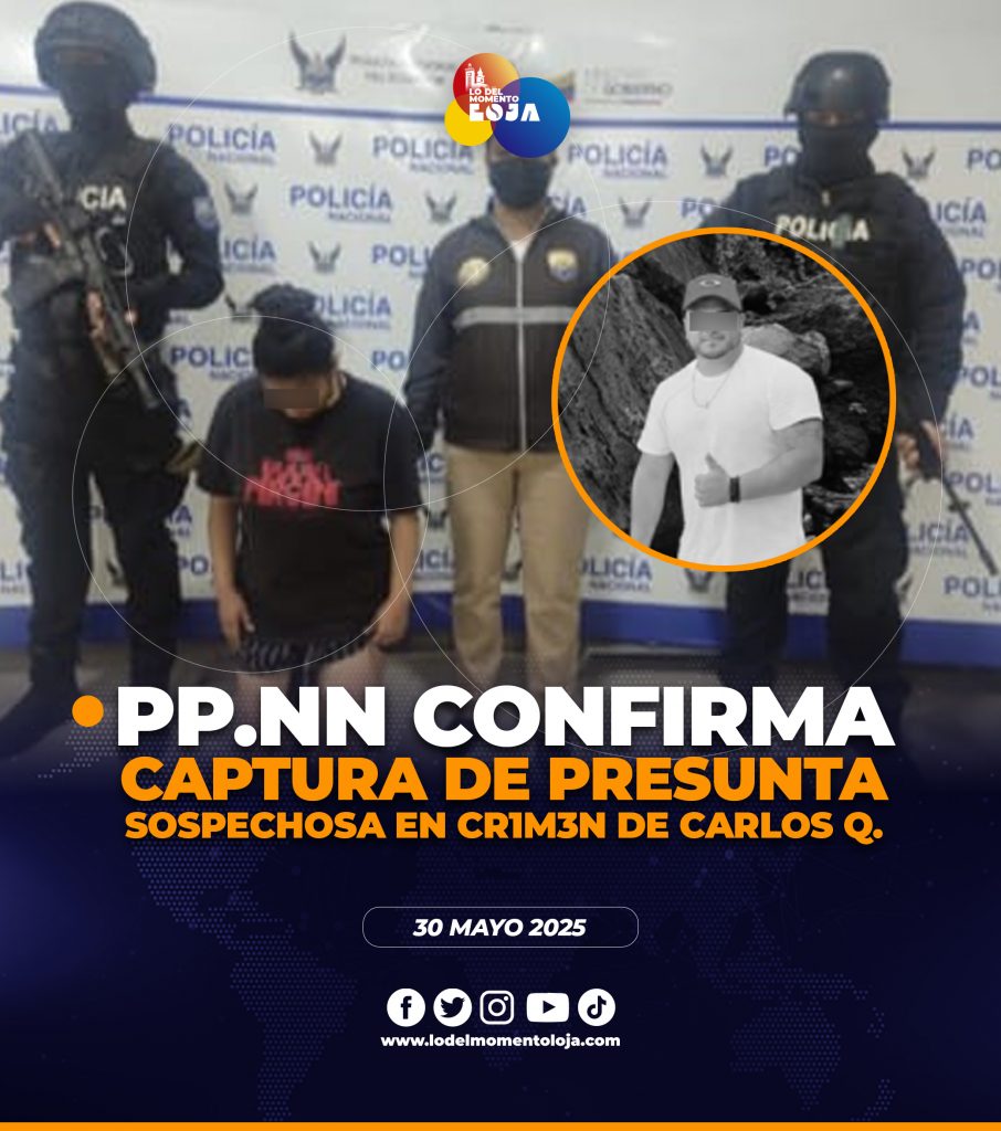 🚨😭🗣️ ¡Presunta sospechosa! Tras varios meses de investigación, La Subzona de la Policía de Loja, informó sobre la captura de una mujer que, aparentemente, estaría implicada en la d3s4p4r1c10n y mv3rt3 de Carlos Quezada, ocurrido el pasado 11 de noviembre de 2024. Se trataría de Paola R.M. de 32 años de edad quien fue detenida en el sector Chontacruz, ubicado al occidente de la ciudad alrededor de las 19H00 del pasado 28 de mayo de 2025. Un cr1m3n que conmocionó a la ciudadanía lojana por el incremento de v10l3nc14 que azota al cantón, por lo que, su familia espera que se haga justicia y evitar que este cr1m3n quede en la impunidad.