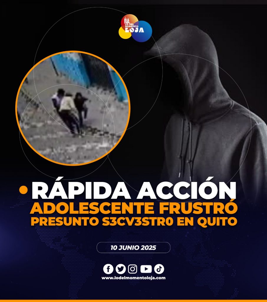 🤯🚨🗣️ ¡Se salvó de milagro! Un intento de s3cv3str0 a plena luz del día fue captado por una cámara de seguridad al norte de Quito. En las imágenes se puede observar el momento preciso en que un adolescente es interceptado por dos individuos cuando se encontraba en una esquina de la Av. Orellana, en las inmediaciones de un plantel educativo. Al percatarse de las intenciones, el adolescente intentó huir, pero los sospechosos lo g0lp34r0n en reiteradas ocasiones, pero los resultados no fueron los esperados, por lo que se marcharon de la escena.