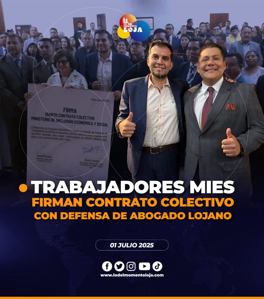 TRABAJADORES MIES FIRMAN CONTRATO COLECTIVO CON DEFENSA DE ABOGADO LOJANO