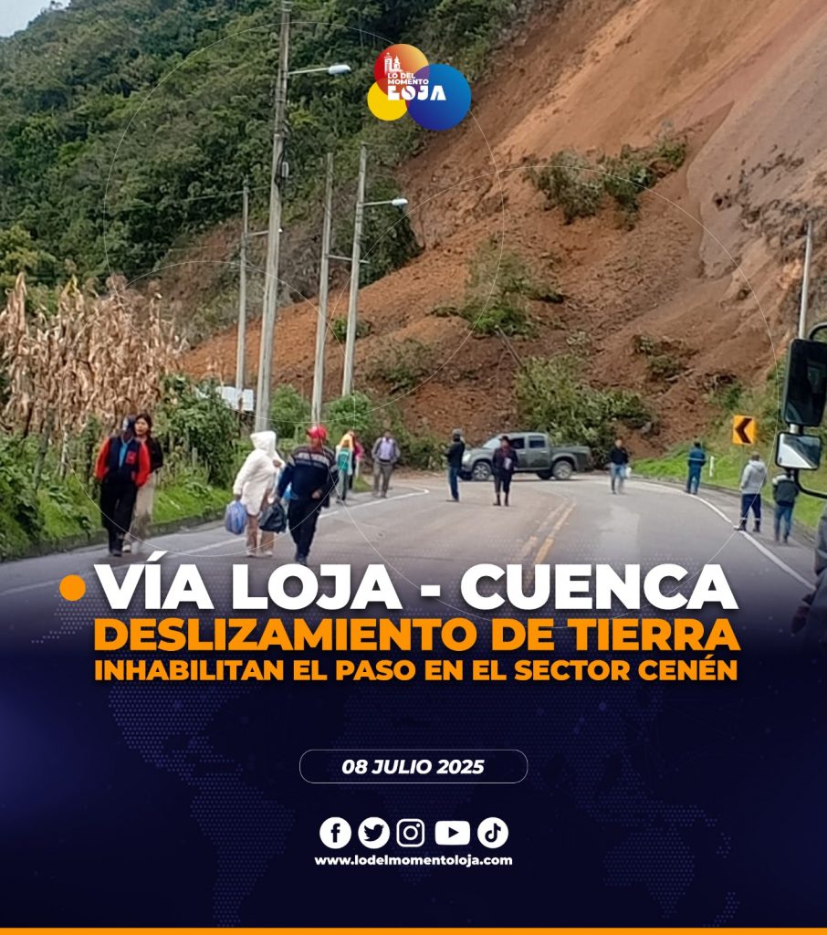 😱⚠️🛣️¡No hay paso! Alrededor de las 13h10pm de este martes 8 de julio de 2025, se registró un 4cc1d3nt3 de tránsito en la vía Loja – Cuenca, sector Cenén. Desde el ECU 911 Loja, se coordinó la atención de esta emergencia con la Secretaría Nacional de Gestión de Riesgos (SNGR), Policía Nacional (PPNN), y la Unidad de Control Operativa de Tránsito (UCOT), quienes brindan asistencia con recursos logísticos y humanos. Al momento maquinaria pesada está en el sitio para ejecutar labores de limpieza de la calzada.