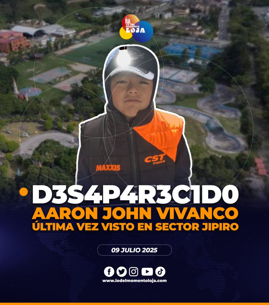🚨👦🏻🕵🏻♂️¡Máxima difusión! El menor de edad, Aaron John Vivanco, fue visto por última vez cuando salió de su casa en horas de la mañana en su bicicleta por el Sector Jipiro. Sus padres están preocupados, y piden a las autoridades que ayuden a localizarlo. Cualquier información sobre el paradero del menor, puede brindarla al Ecu 911.