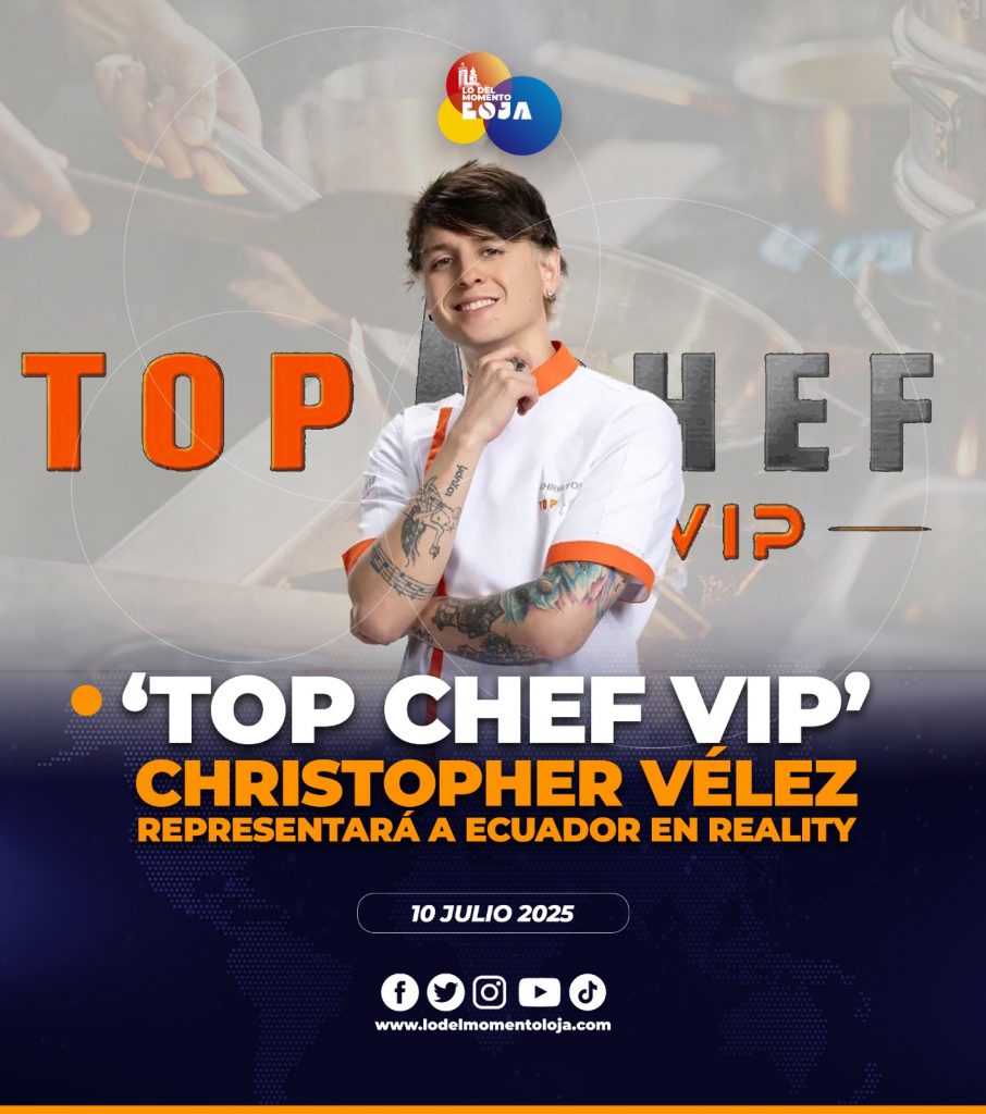 🇪🇨👨🏻🍳👨🏻🎤¡Una nueva faceta! El artista lojano Christopher Vélez (ex integrante de la banda juvenil CNCO) fue anunciado como parte de los famosos que participarán en el reality Top Chef VIP, de Telemundo, en su cuarta temporada, siendo el representante Ecuatoriano en este segmento internacional. En la lista de participantes, Vélez aparece junto a otras figuras de Latinoamérica, como Elvis Crespo, Sergio Sendel, Lorena Herrera y Juan Soler.