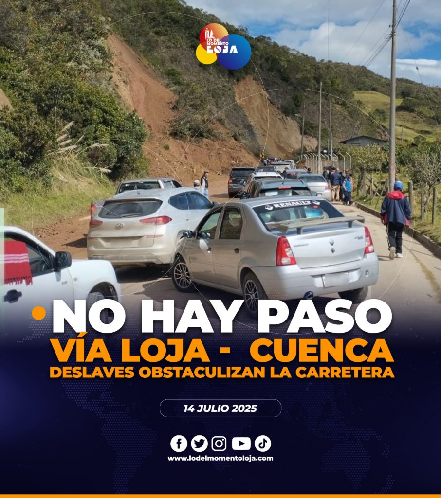 😱⚠️🛣️¡No hay paso! A la altura del sector Cenén (parroquia Santiago), en la vía Loja – Cuenca, se encuentra cerrada al tránsito vehicular, esto debido a los derrumbes que se registraron durante la madrugada de este 14 de julio. Moradores del sector, intentan limpiar y retirar el material pétreo, puesto que la maquinaria aún no llega al lugar afectado.