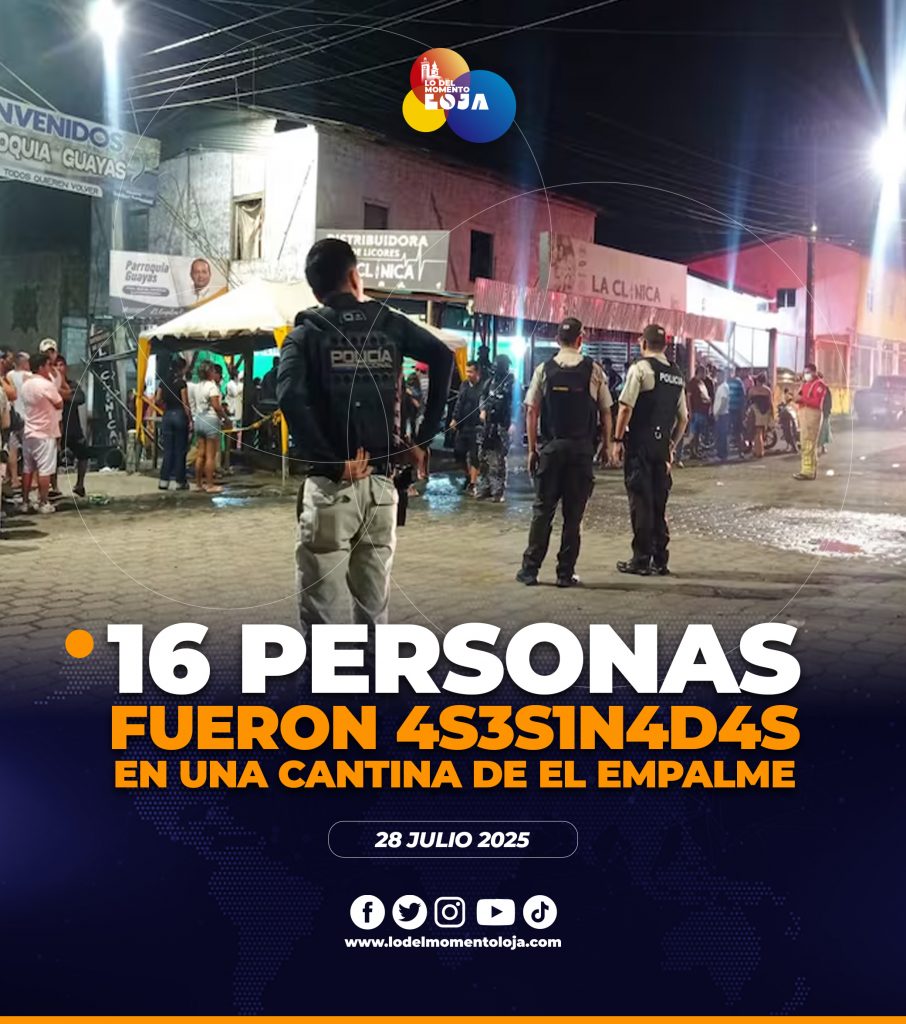 😱🚨🚔¡Nueva m4s4cr3! Durante horas de la noche del domingo 27 julio, se registró un nuevo hecho violento en el Empalme, provincia de Guayas, en donde un grupo de al menos ocho personas 4rm4d4s irrumpió en una cantina y disp4r4r0n en múltiples ocasiones contra decenas de personas que se encontraban en el lugar, dejando como saldo 16 personas f4ll3c1d4s y varios h3r1d0s. El personal de la Policía y Criminalística se desplegó en el lugar para realizar las investigaciones correspondientes y levantar los cuerpos sin vida.