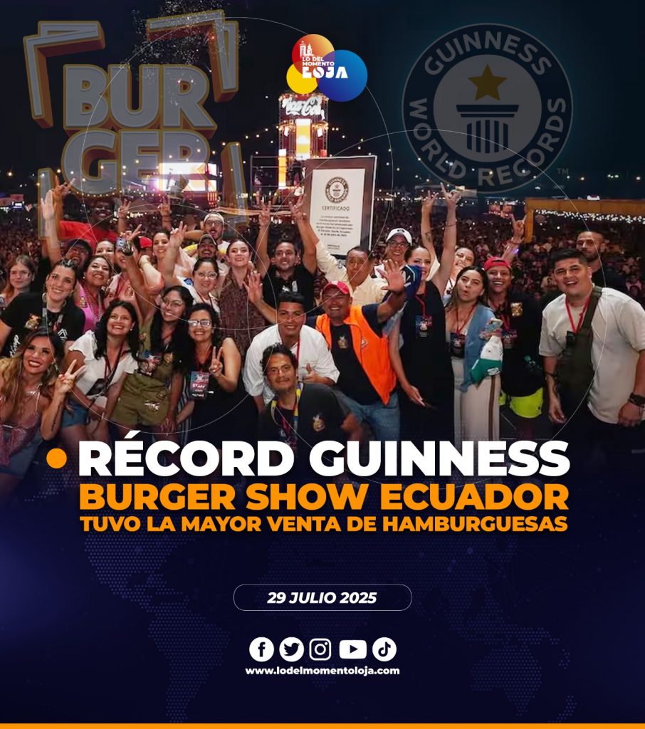 🇪🇨🍔🤤¡Ecuador conquista el mundo en el Burger Show 2025! El pasado 26 de julio, Ecuador, especialmente Guayaquil celebró un Récord Guinness al vender más de 20,000 hamburguesas en 8 horas en la explanada del Riocentro El Dorado, en donde más de 40 emprendedores ofrecieron 180 variedades de hamburguesas, superando a Estados Unidos. Lágrimas y orgullo se desbordaron al lograr este hito histórico que pone a Ecuador en el mapa gastronómico global, además de ubicar a dicho festival de hamburgesas, como el más grande del mundo.