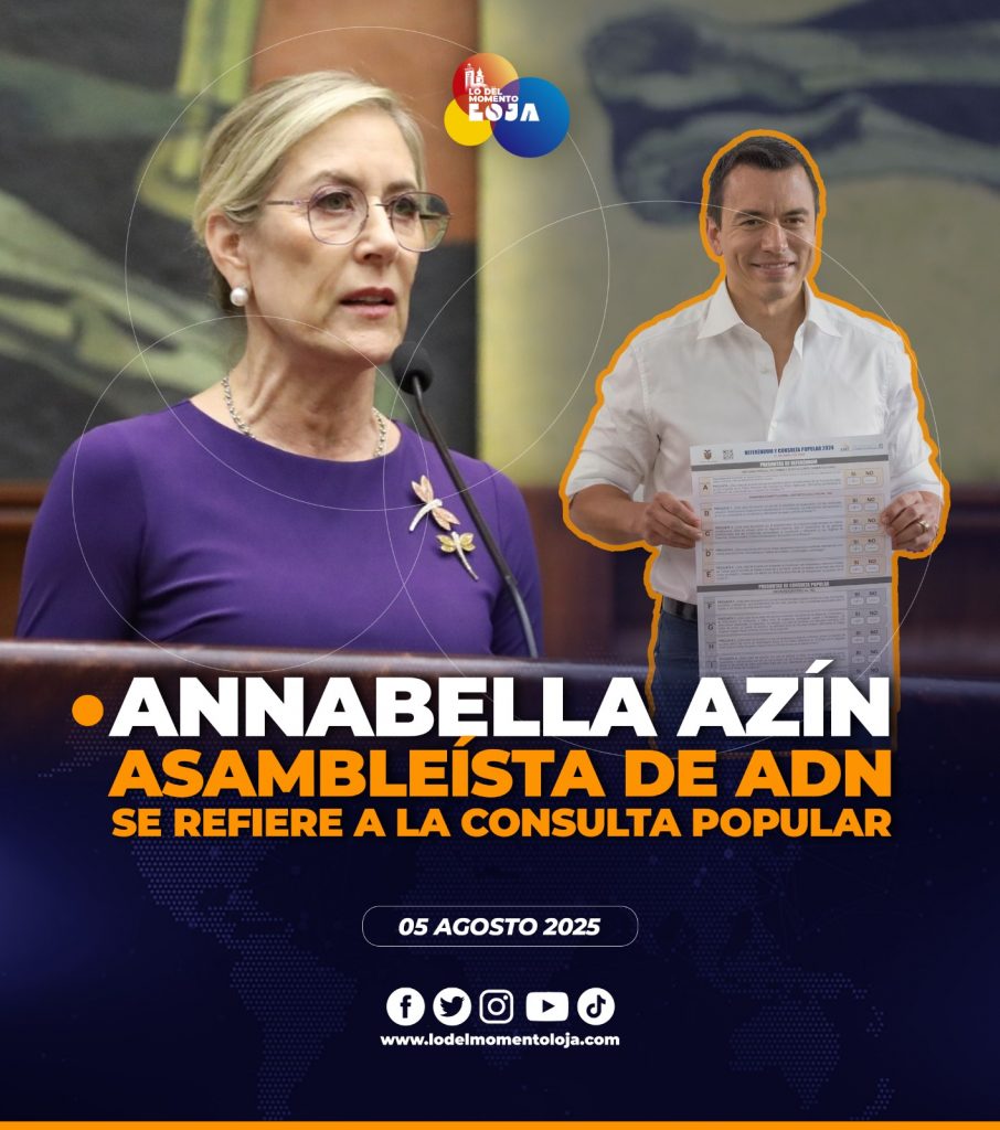 🟣📄✅ ¡Esto es del pueblo! La asambleísta de ADN, Annabella Azin a través de su cuenta de X, se refirió a la consulta popular presentada por el primer mandatario Daniel Noboa.