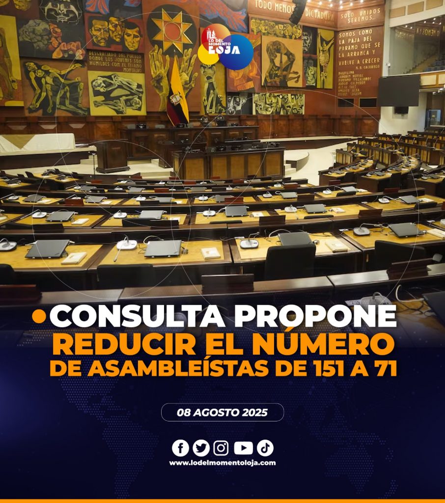 😱🗳️✅¡En manos de la ciudadanía! Los asambleístas podrían reducirse de 151 a 71, en caso de que fuese la aprobada la cuarta pregunta de la Consulta Popular que fue enviada por el presidente Daniel Noboa el pasado 5 de agosto de 2025. Según, Stalin Andino, secretario jurídico de la Presidencia de la República, mencionó en una entrevista para un medio de comunicación, que entre los anexos que serán enviados a la Corte Constitucional (CC) de la pregunta 4 estará incluida la propuesta del Ejecutivo para la reducción del número de parlamentarios que aplicaría para las próximas elecciones, en caso de que sea aprobada por la ciudadanía. Además en el anexo se establecerá que sean elegidos 10 asambleístas nacionales, uno por provincia y uno adicional por cada 400.000 habitantes, además de los tres de circunscripciones del exterior.