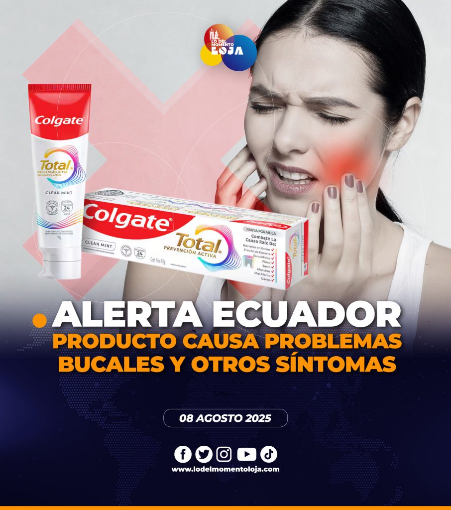 La Agencia Nacional de Regulación, Control y Vigilancia Sanitaria (ARCSA) ha expuesto mediante sus redes sociales la alerta para todo el país sobre un posible riesgo asociado al consumo del producto tipo crema dental de la marca Colgate Total Clean Mint, ya que entre los principales síntomas estaría: irritación bucal, inflamación de encías, dolor bucal, sensibilidad dental, sangrado, aftas o forúnculos. Por lo que se recomienda evitar la compra o consumo del mismo. En caso de presentar síntomas adversos tras su uso, repórtalos de inmediato a través de nuestra aplicación digital #ArcsaMóvil .