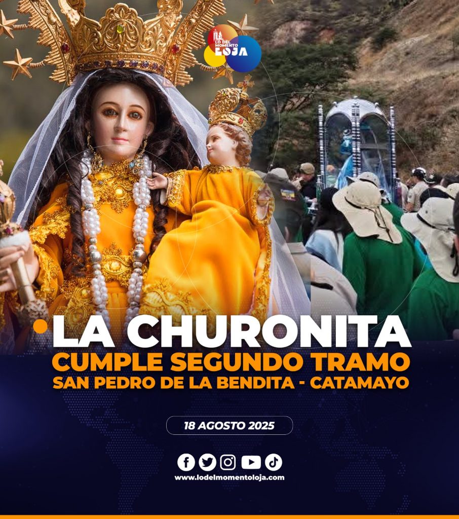 ⛪🙏🏻📿 ¡Romería de ‘La Churonita’! A partir de las 07:00 de este lunes, 18 de agosto de 2025, junto a miles de fieles, la imagen de la Virgen del Cisne partió desde la parroquia San Pedro de la Bendita hacia la ciudad de Catamayo, en la provincia de Loja.