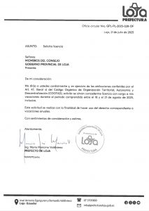 🦥😬👋🏻 ¡Debe estar cansado! Mediante Cámara Provincial, el Prefecto de Loja ha solicitado por segunda vez en el 2025 una pausa en sus labores para irse de vacaciones, la primera vez se fue del 19 al 28 de febrero en una temporada invernal bastante delicada para las zonas rurales, esta segunda, la hace del 18 y 21 de agosto 2025 en plena peregrinación de la Virgen de El Cisne, y en su reemplazo quedaría como Prefecta Encargada, la Abg. María José Sotomayor, pese a que este último encargo ha pasado casi desapercibido.