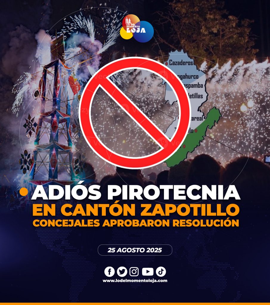 😱🚨🧨¡Buena decisión! El Concejo Municipal de Zapotillo aprobó la prohibición de fuegos pirotécnicos en dicho cantón de manera indefinida, rigiendo desde el pasado 20 de agosto, tras la sesión de cabildo, esto gracias a la propuesta de Carolina Barrero ideadora y promotora del proyecto de ley.