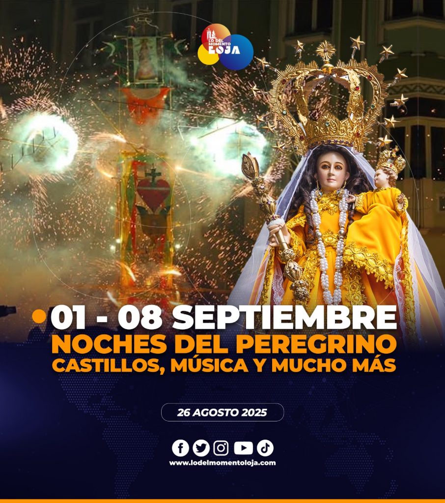 ⛪👸🏻🎆¡A disfrutar de tradiciones! Loja se prepara para vivir con fervor las tradicionales noches del peregrino, mismas que se realizarán desde el próximo 01 al 08 de septiembre en los exteriores de La Catedral y que son organizadas por los priostes de la provincia del Azuay. En dichos eventos se podrá disfrutar de la participación de bandas populares, artistas, danzas folclóricas, juegos pirotécnicos y la espectacular quema de castillos.