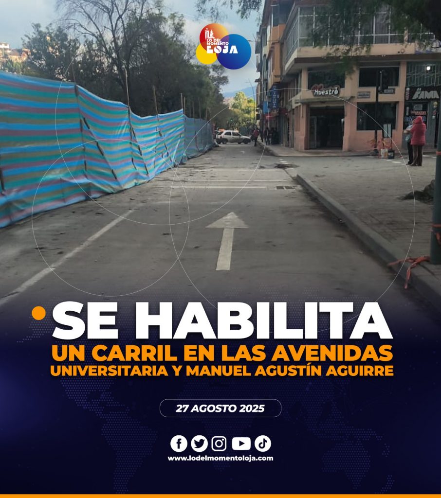 😱🛣️🚘¡Un carril por ahora! Desde este 27 de agosto del 2025, se habilita un carril en la Avenida Universitaria y otro carril en la Avenida Manuel Agustín Aguirre, a la altura de la calle Imbabura, esto con el fin de agilizar la circulación del tránsito en estos sectores.