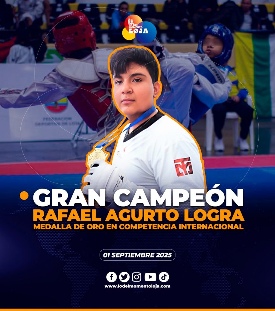 🇪🇨🥇🥋¡Campeón indiscutible! El deportista lojano Rafael Agurto Guzmán, representó a la Provincia de Loja, Fedeloja y al club CLUB Carvallo en el Campeonato Open Internacional Mercenarios 2025, que se desarrolló durante el fin de semana en la ciudad de Quito. Dicho evento que convocó a los mejores atletas de taekwondo del Ecuador, en el cual Rafael, destacó con esfuerzo, disciplina y mucha dedicación, alcanzando la medalla de oro en la categoría Cadete Heavy+65kg.