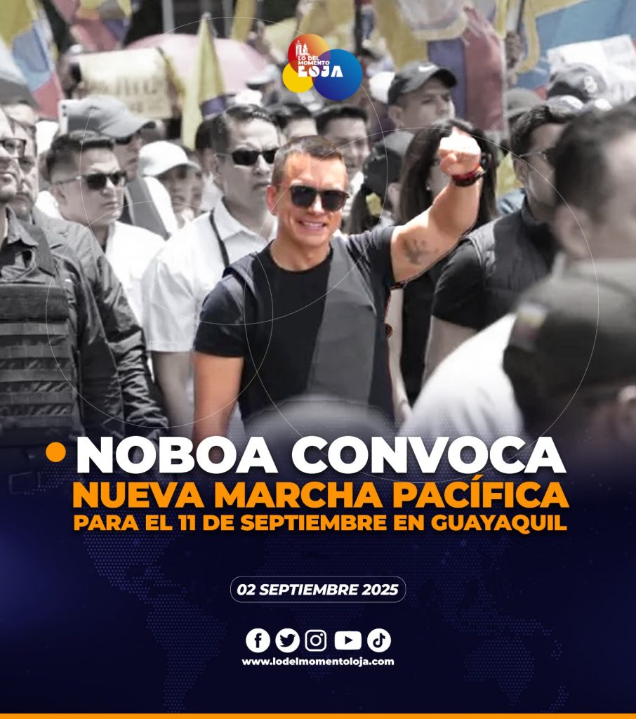 😱🗣️🪧¡’Por la paz y justicia’! El presidente Daniel Noboa convocó a una gran marcha ciudadana que se realizará en Guayaquil el jueves, 11 de septiembre. El anuncio se efectuó mediante un comunicado oficial de la Presidencia, en el que se señala que el objetivo es expresar de manera firme y pacífica el compromiso del país con la defensa de la paz y la justicia, pilares esenciales para la convivencia democrática y el fortalecimiento del Estado de derecho.
