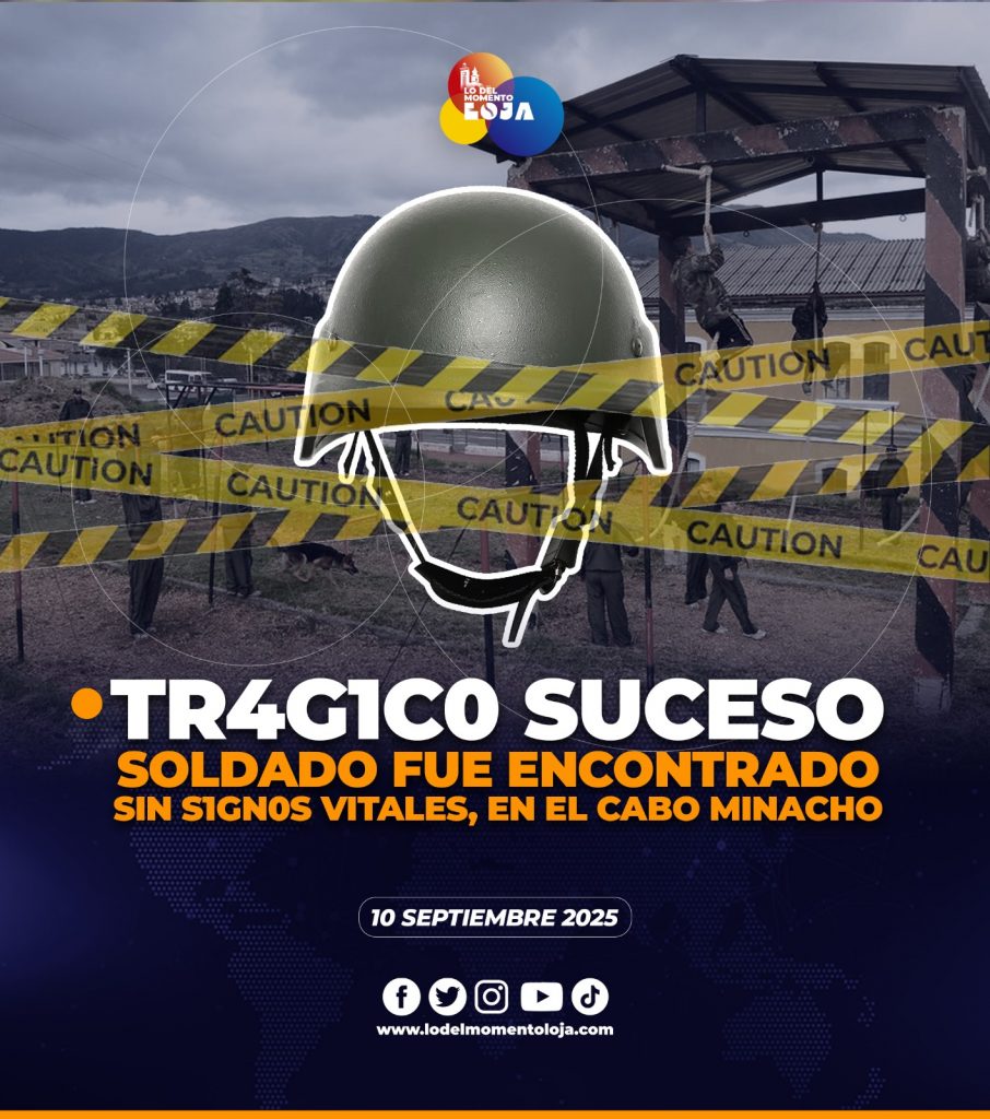 😔🪖✝️¡Triste suceso! La ciudad de Loja registró un hecho trágico la tarde del martes 9 de septiembre de 2025, cuando el cuerpo sin signos vitales de un soldado de reserva fue hallado en el Fuerte Militar Cabo Minacho. Según las primeras indagaciones, el joven habría recibido un impacto de su propio fusil dentro de las instalaciones. El hecho ha causado gran conmoción dentro de la unidad militar y se encuentra en proceso de investigación para esclarecer los hechos.
