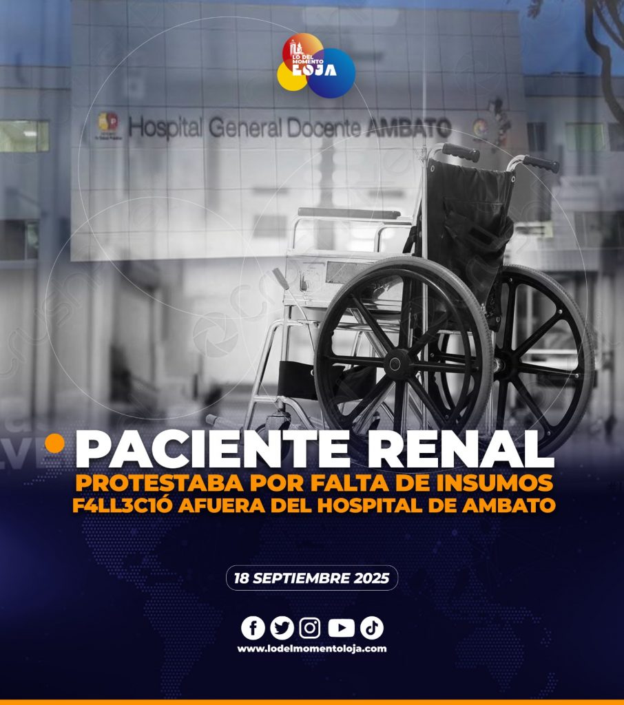 😱🚨🚑¡Hasta cuando! Un paciente que participaba en una protesta por falta de tratamientos e insumos para pacientes con insuficiencia renal en el Hospital General Docente de Ambato, falleció la mañana del 17 de septiembre después de desplomarse en los exteriores del establecimiento. Según ciudadanos, mencionan que tras desvanecerse, fue cargado por sus compañeros hacia el área de emergencia en medio del clamor: “queremos los insumos, por favor, necesitamos. ¡Nos estamos mvr13ndo!”.
