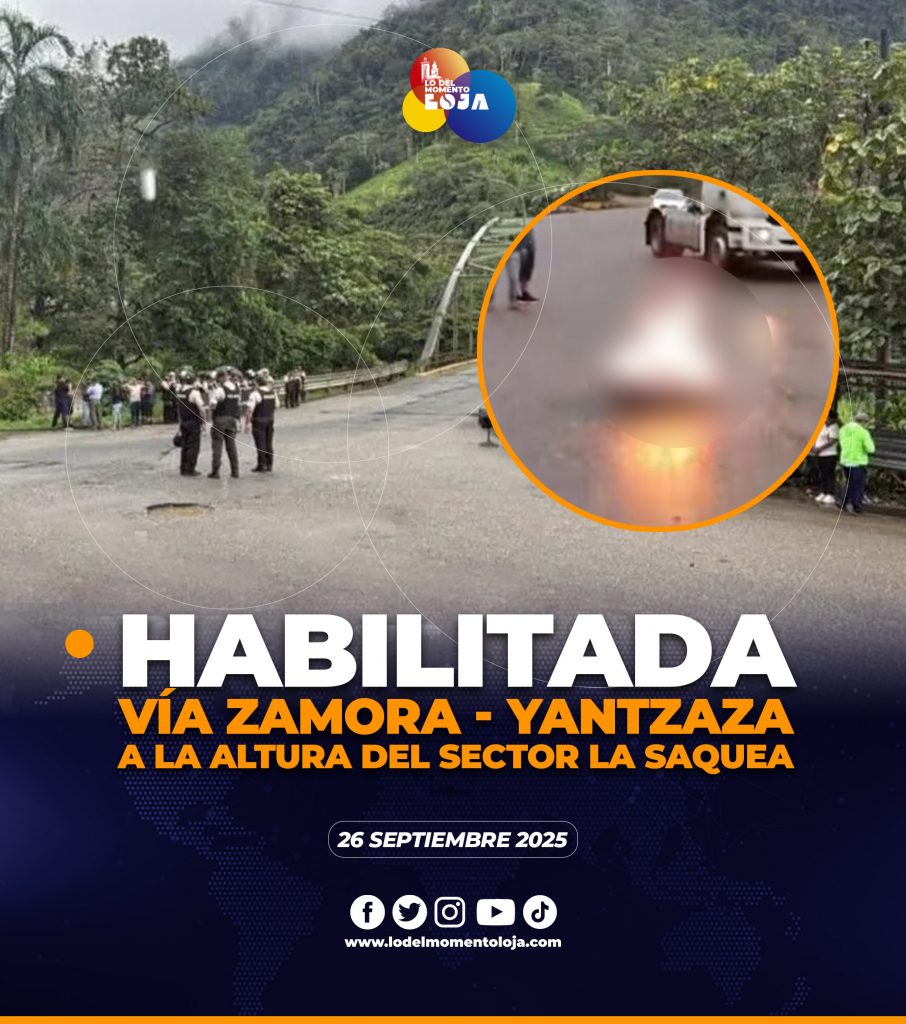 🚘⚠️🛣️¡Paso sin problemas! En las primeras horas de la mañana de este 26 de septiembre, miembros de organizaciones sociales de Zamora Chinchipe se unieron al paro nacional, con el cierre de la vía Zamora – Yantzaza, a la altura del puente de La Saquea, mismo que generó una fuerte congestión vehicular en el punto. Sin embargo, dos horas después, personal policial, logró desalojar los obstáculos que impedían la libre circulación, habilitando la vía en su totalidad.