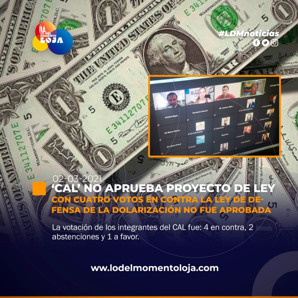 El Consejo de Administración Legislativa se reunió para tratar el proyecto de ley enviado por el ejecutivo. Con 4 votos en contra, 2 abstenciones y 1 voto a favor no fue aprobado para su debido debate el proyecto de Ley de Defensa de la Dolarización.