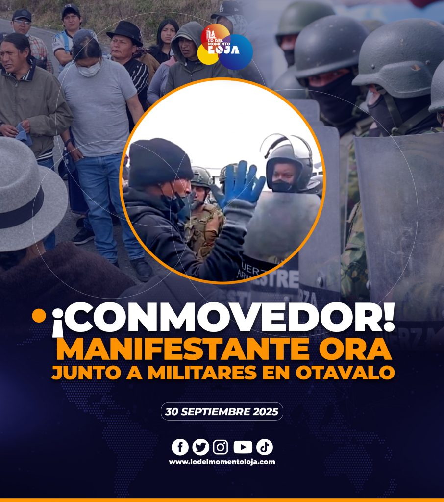 😔🙏🏻🫂¡En medio del paro! Un acto simbólico se registró durante las manifestaciones de este 30 de septiembre, en San Rafael de la Laguna, Otavalo, en donde se pudo presenciar a un comunero que elevó una oración junto a los militares presentes en el lugar, en el cual pide misericordia por la vida de cada persona que viven estos terribles momentos de enfrentamientos. El momento culminó con un abrazo que selló la escena.