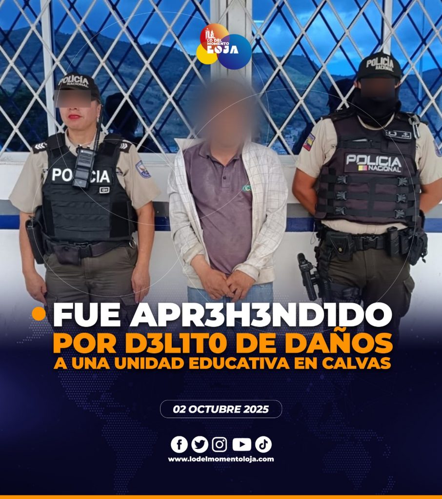 SUJETO FUE D3T3N1D0 POR DESTRUIR UNA INSTITUCIÓN EDUCATIVA EN CALVAS