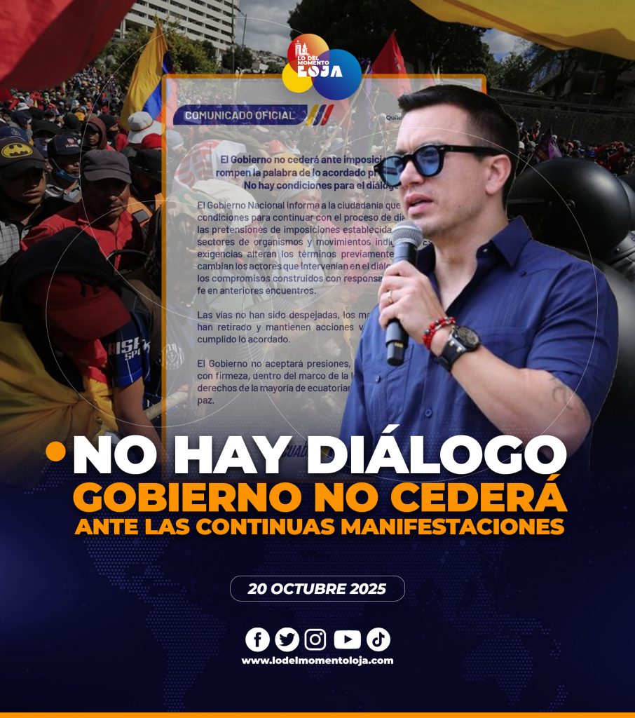 🗣️🚫📄¡Queda suspendido! Mediante un comunicado oficial, emitido la noche del 19 de octubre del 2025, el Gobierno Nacional del Ecuador informó que no existen condiciones para continuar con el proceso de diálogo político con sectores indígenas. Según esta cartera de estado, ciertos grupos han establecido pretensiones de imposición que alteran los términos acordados. Además, el Gobierno denunció que se mantienen acciones v10l3ntas y cierres de carreteras, situación que impide el normal desarrollo de las actividades económicas y sociales en varias provincias.