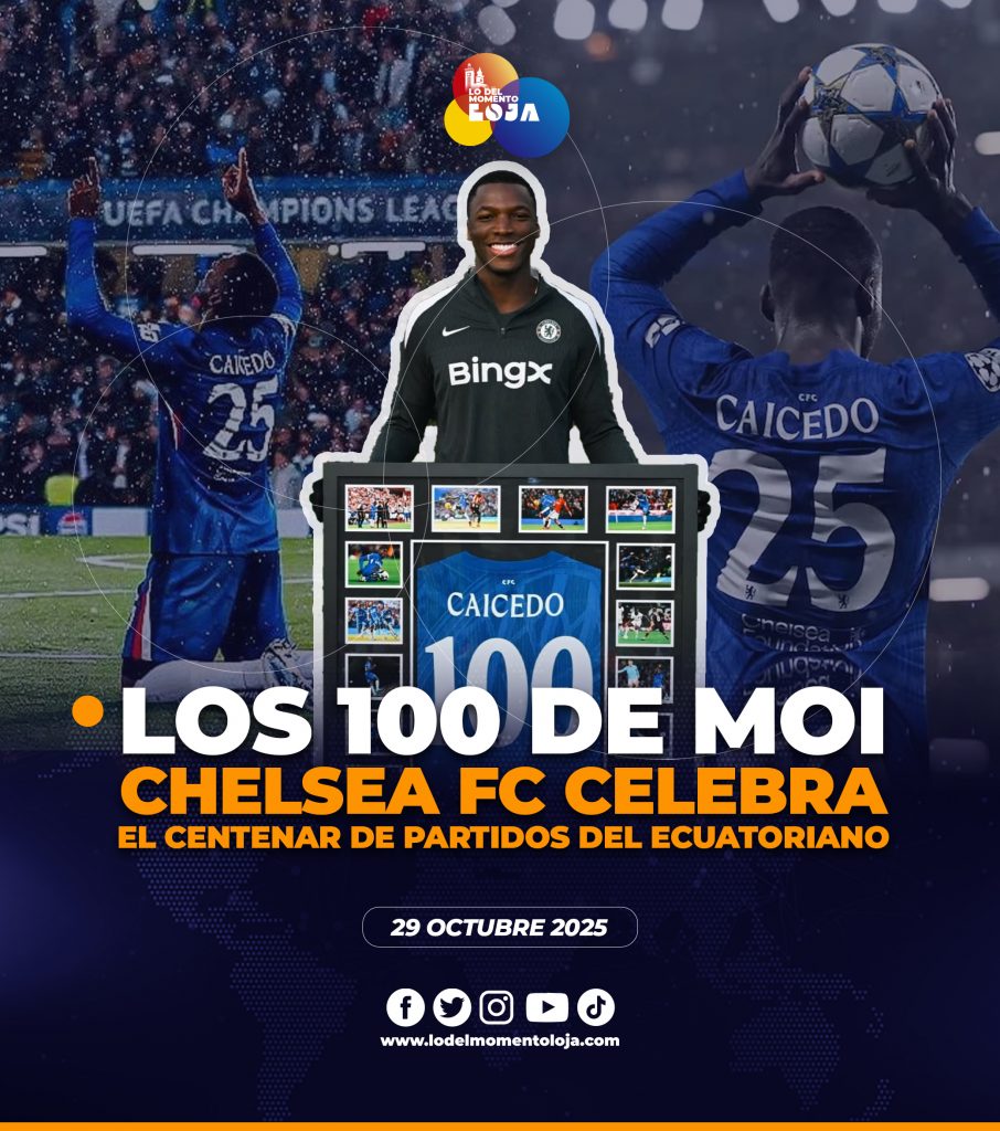 👏🏻⚽💙¡Grande Moi! El equipo londinense, Chelsea F.C, a través de sus redes sociales, publicó una fotografía de Moisés Caicedo con una camiseta del equipo inglés con el número 100, en honor a sus primeros cien partidos desde que llegó a los Blues. Cabe destacar que Caicedo fichó hace casi exactamente dos años y, curiosamente, debutó en un partido como visitante ante el West Ham, en agosto de 2023, desde entonces, el mediocampista ecuatoriano ha sido prácticamente un titular indiscutible, convirtiéndose en un jugador fundamental para el equipo.
