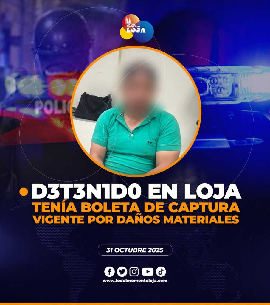 Sujeto detenido con boleta de captura por daños materiales en Loja