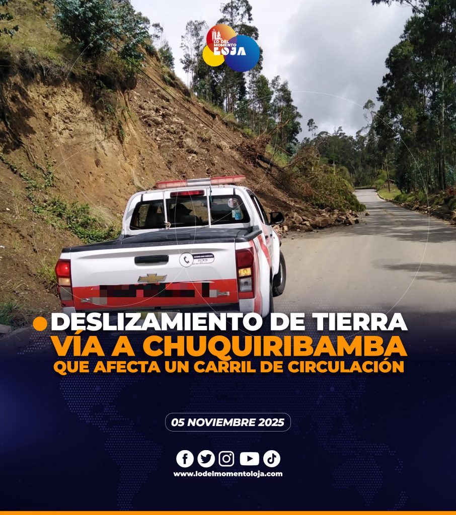 😱🚨⚡¡Atentos todos! Desde el Ecu 911 se informa que en la vía a Chuquiribamba, sector Carmelo Alto, se registró un deslizamiento de tierra que afecta un carril de circulación. En donde también se reportan la presencia de cables de alta tensión en el sitio. Instituciones correspondientes realizan seguimiento y coordinan acciones para garantizar la seguridad y limpieza en la zona.
