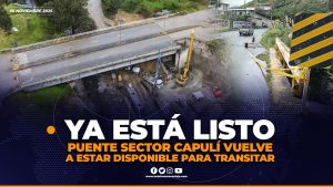 Puente del sector El Capulí estará disponible al tránsito vehicular después de cerca de 8 meses.