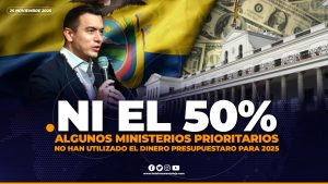 😱🇪🇨💸 ¡Ni el 50%! Varias carteras de Estado no han ejecutado ni el 50% del presupuesto a pocos más de un mes que culmine el año 2025. Hasta noviembre, el Gobierno de Daniel Noboa ha ejecutado cerca del 73% del Presupuesto General del Estado, equivalente a unos USD 30.000 millones de los USD 41.338 millones aprobados para este año.