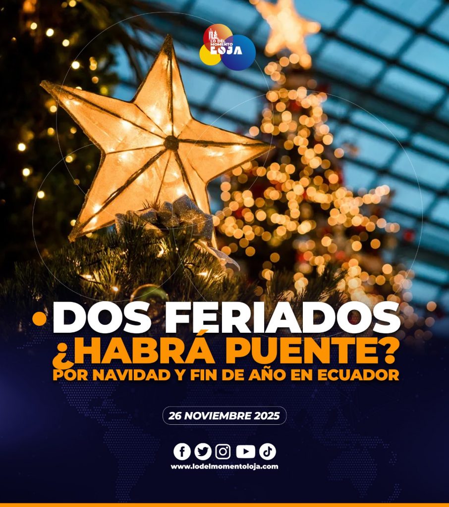 😱📆🥳¿Podrían trasladarse la fecha? El Gobierno evalúa extender los feriados de Navidad (jueves 25 de diciembre de 2025) y Año Nuevo (jueves 1 de enero de 2026) para convertir el viernes en día puente y prolongar el descanso hasta el fin de semana. Aunque la decisión final aún no está tomada, Harold Burbano señaló que existe una alta posibilidad de que se concrete y que dependerá del presidente Daniel Noboa.