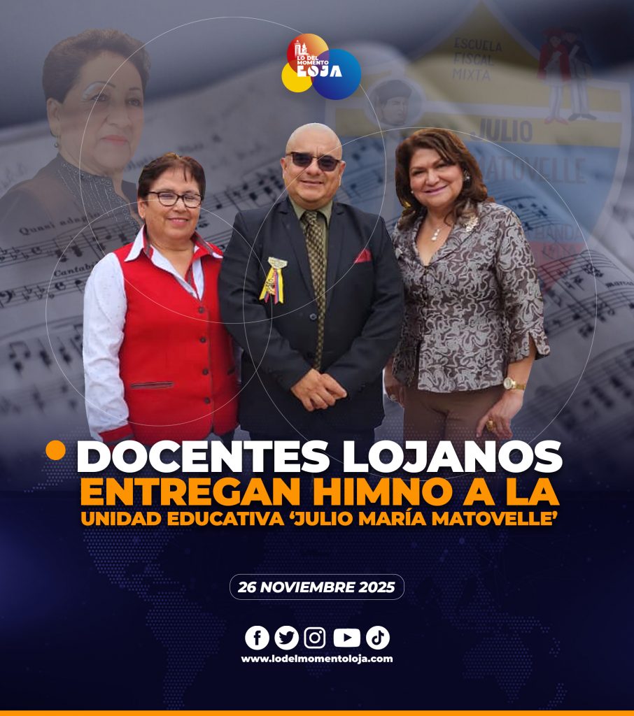 En un acto cargado de simbolismo, identidad y profundo sentido educativo, personalidades de Loja realizaron la entrega oficial del Himno de la Unidad Educativa Julio María Matovelle, una obra concebida y creada íntegramente por talento local. Esta composición, que desde hoy pasa a formar parte del patrimonio cultural y formativo de la institución, fue recibida con orgullo por autoridades, docentes, estudiantes y padres de familia.