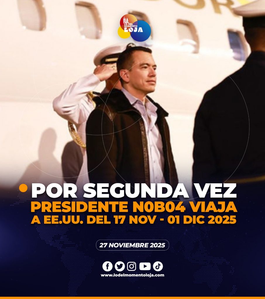 😱🛫🗽¡Por segunda ocasión! El presidente de la República, Daniel Noboa, realizará un nuevo viaje a Estados Unidos en menos de un mes. Según el Decreto 235, el primer mandatario se ausentará del país del 27 de noviembre al 1 de diciembre 2025 para cumplir con una agenda internacional.