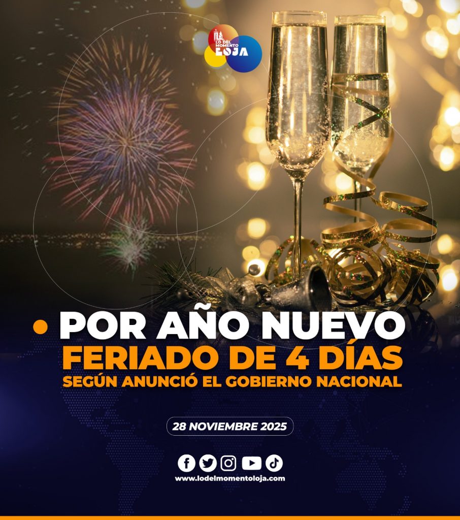 😱📆🎆¡Pilas con eso! El Gobierno anunció que no habrá feriado extendido por Navidad, el descanso será únicamente el jueves 25 de diciembre, ya que esta fecha no puede trasladarse ni formar puente. En cambio, para Año Nuevo sí se prevé un feriado de cuatro días, del 1 al 4 de enero de 2026, el viernes 2 de enero será recuperable, según acuerdo entre empleador y trabajador. Pese a que aún falta la emisión del decreto presidencial que oficialice esta decisión, la intención del Gobierno es impulsar la economía mediante este feriado largo.