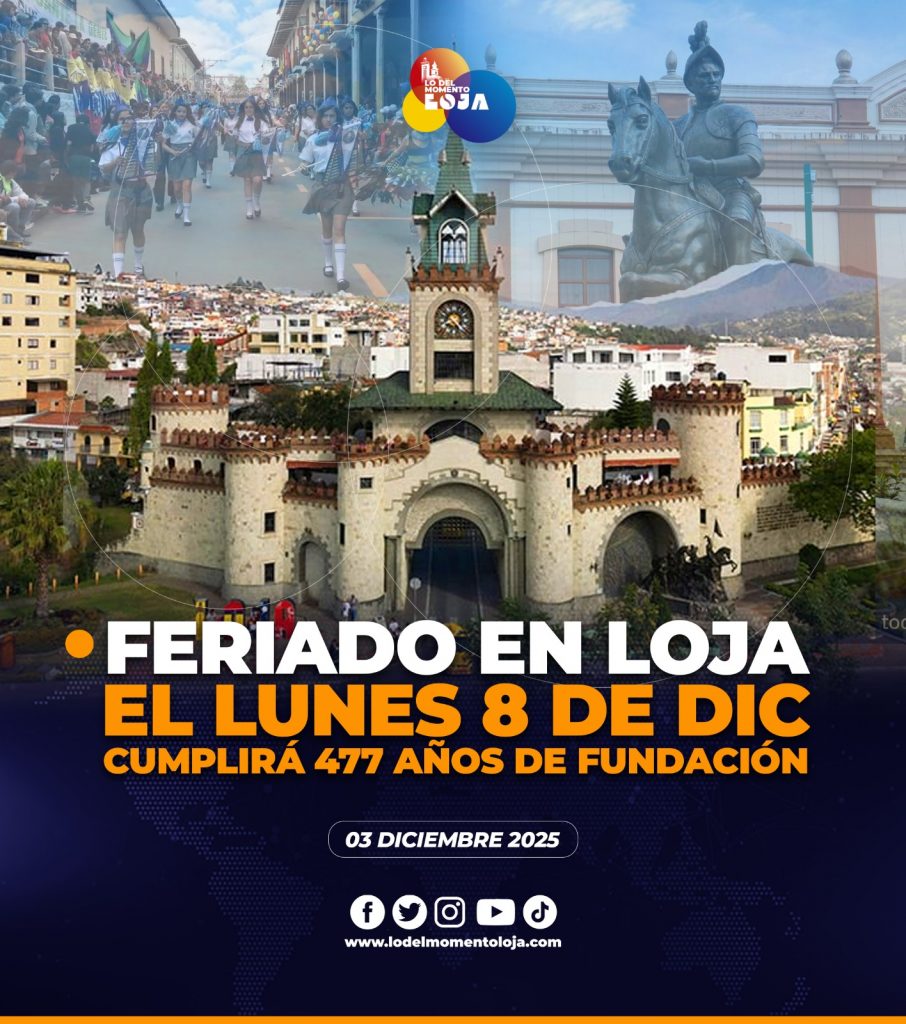 🥳👏🏻📆¡Pilas con el feriado! El lunes 8 de diciembre será feriado obligatorio para el sector público y privado del cantón, en conmemoración de los 477 años de Fundación de Loja. La medida se sustenta en la Ley Orgánica del Servicio Público (LOSEP), que determina que las fechas de independencia o creación de provincias y cantones son días de descanso obligatorio. Asimismo, la normativa establece que cuando un feriado coincide con sábado o domingo, el descanso debe trasladarse al viernes anterior o al lunes siguiente. En este marco, las autoridades confirmaron que el feriado se aplicará únicamente en el cantón Loja, tanto para instituciones públicas como privadas.