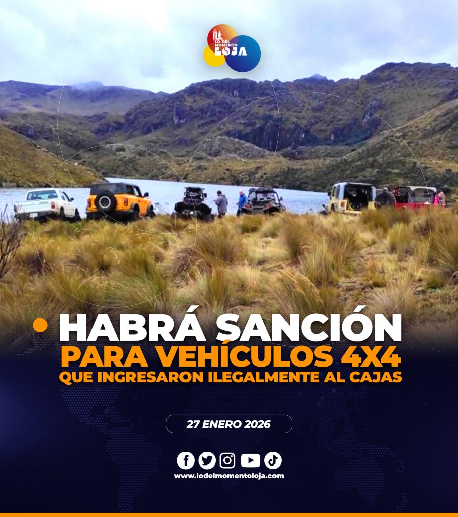 😱🏞️⚠️¡Pilas a la sanción! La Empresa de Telecomunicaciones, Agua Potable (Etapa) anunció el lunes 26 de enero de 2026 el ingreso no autorizado de vehículos 4×4 al Parque Nacional Cajas, ubicado en Cuenca, lo que provocó daños visibles en la vegetación de este ecosistema protegido. Guardaparques desalojaron a los responsables y el caso fue informado al Ministerio de Ambiente y Energía para iniciar acciones legales.