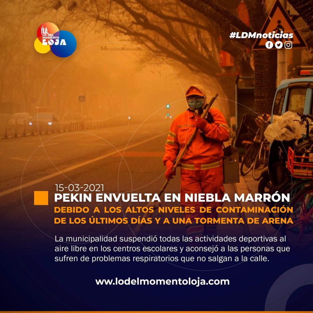 #Internacional | Pekín envuelta en una espesa niebla marrón debido a los altos niveles de contaminación de los últimos días y a una tormenta de arena proveniente de Mongolia.