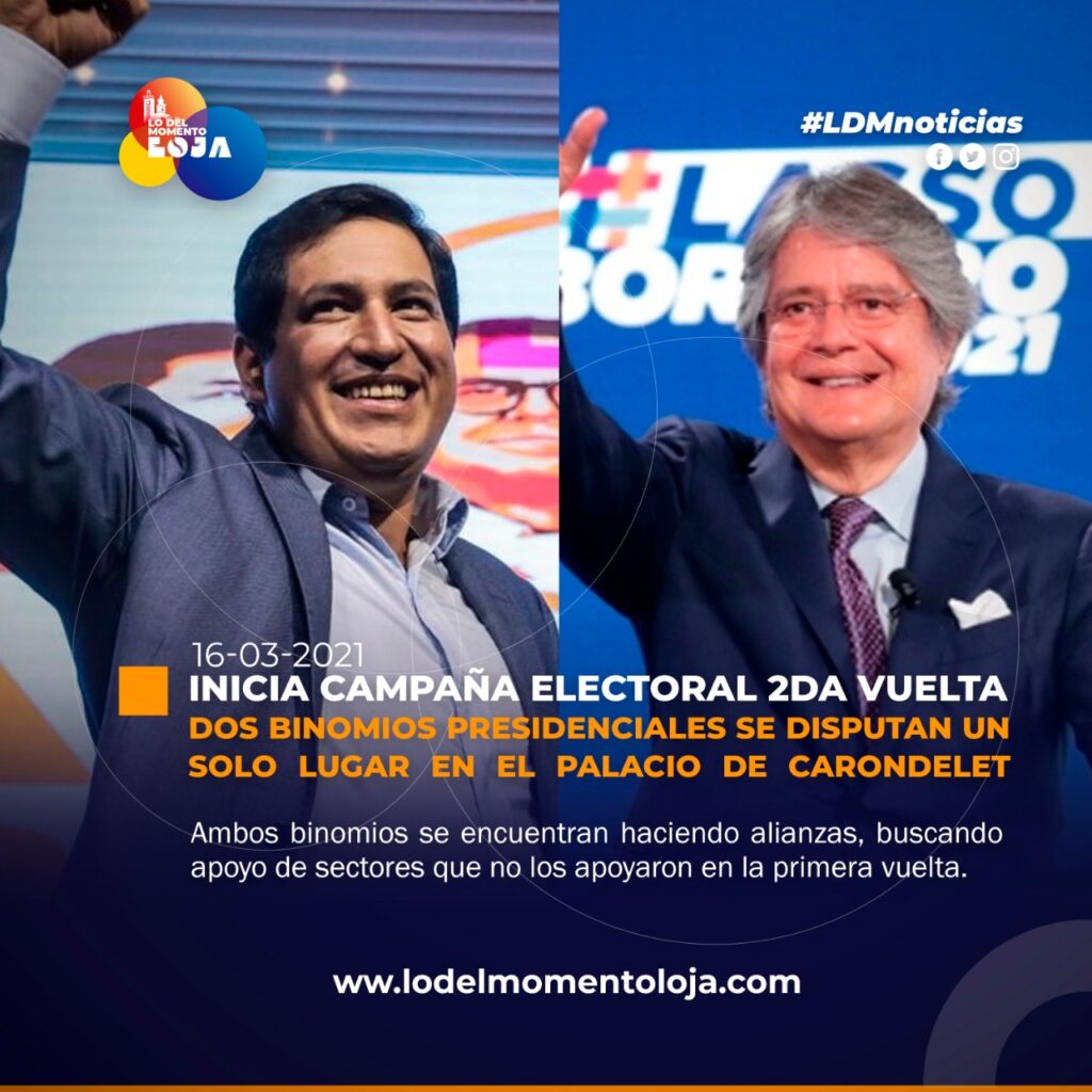 Desde hoy 16 de marzo inicia la campaña electoral de cara a las elecciones presidenciales de segunda vuelta. Son dos binomios presidenciales que se disputan un solo lugar en el Palacio de Carondelet.