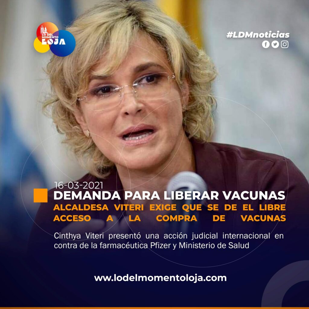 Hoy, la Alcaldesa de Guayaquil Cynthia Viteri, presento una acción judicial internacional en contra de la farmacéutica Pfizer y el Ministerio de Salud para exigir que se de el libre acceso a la compra de vacunas por parte del Municipio de Guayaquil.