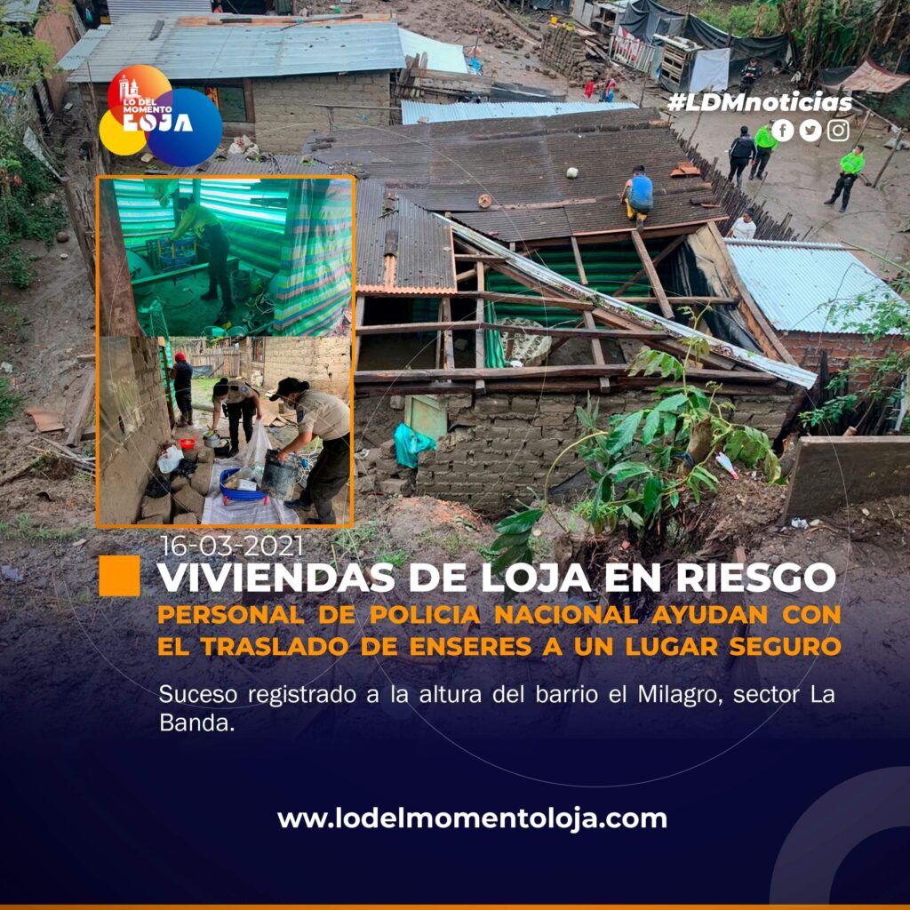 #Loja | En el Cantón Loja, barrio el Milagro, sector La Banda, miembros de policía nacional, colabora con el traslado de enseres a un lugar seguro ya que las viviendas se encuentran en riesgo, por motivo de las fuertes lluvias registradas estos últimos días en Loja.