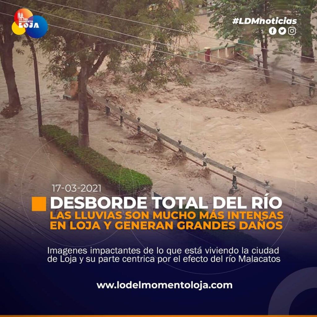 Las fuertes lluvias siguen siendo cada vez más fuertes en la ciudad y ahora se ha desbordado el agua del río Malacatos en su totalidad, tal como se puede apreciar la imagen de la Av. Universitaria.