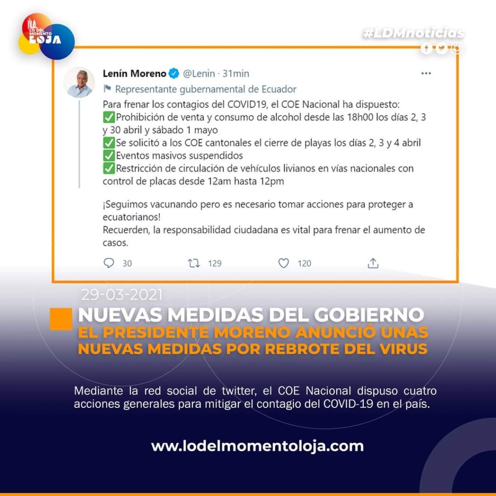 #Ecuador | Disposiciones del COE Nacional para frenar contagios por COVID-19.
