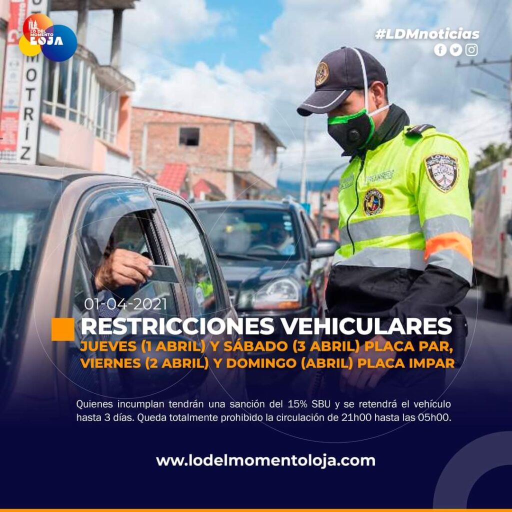En las fechas indicadas del mes de abril, solo podrán circular vehículos particulares de 05h00 a 21h00 conforme al último dígito de la placa, y son: