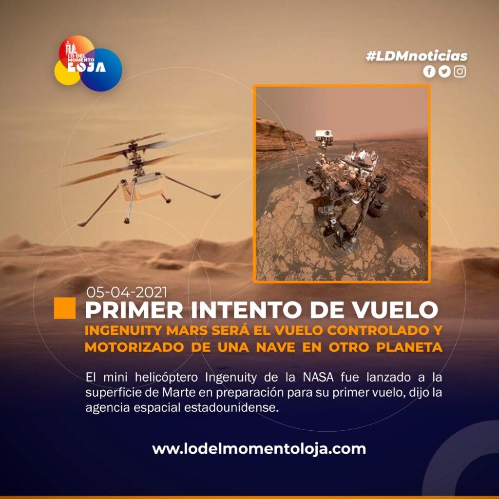 #Mundo | La NASA ha confirmado que Ingenuity Mars hará el primer intento de vuelo controlado y motorizado de una nave en otro planeta.